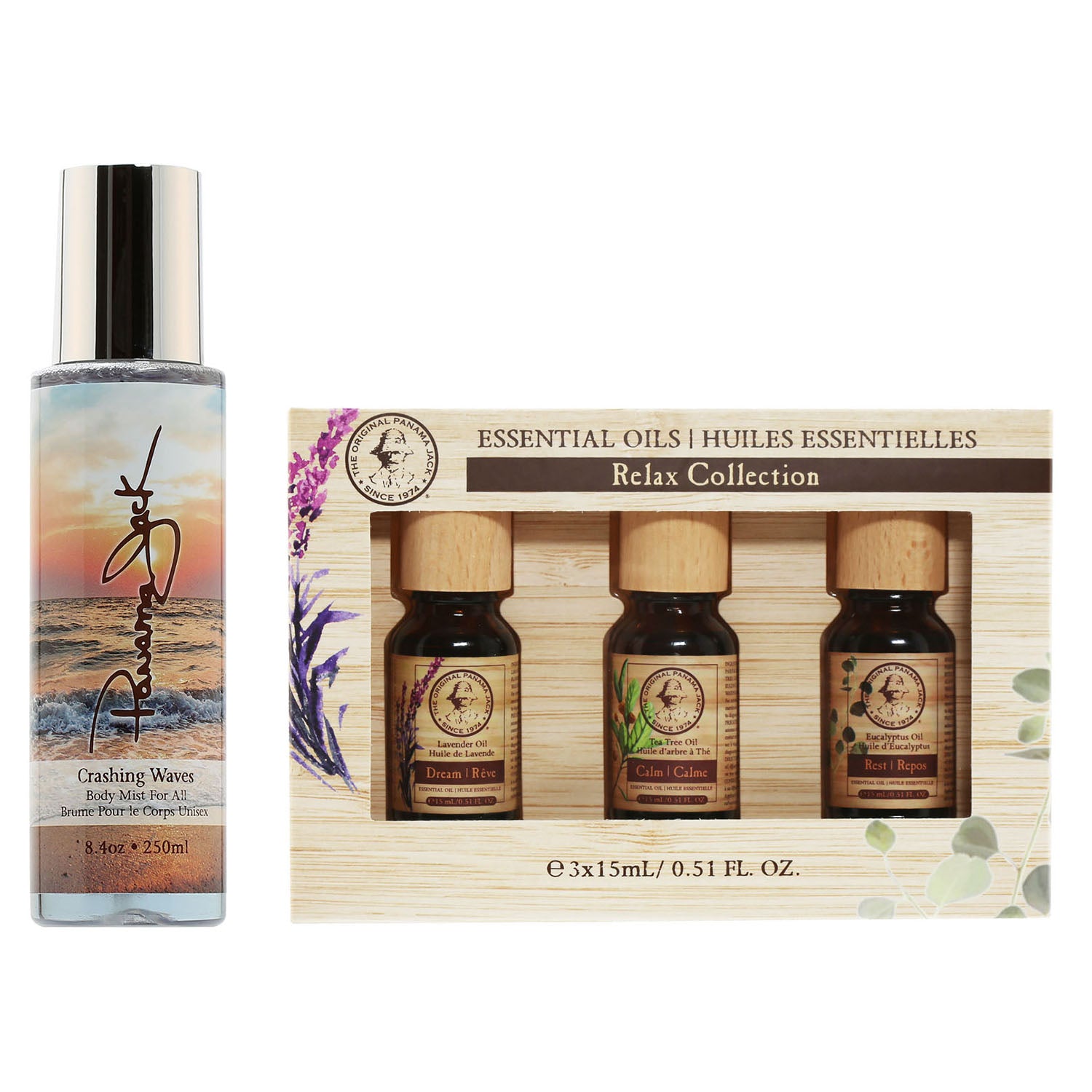 Duo Panama Jack Essential Oils Relax Set + Crashing Waves 3.4 Oz Spray